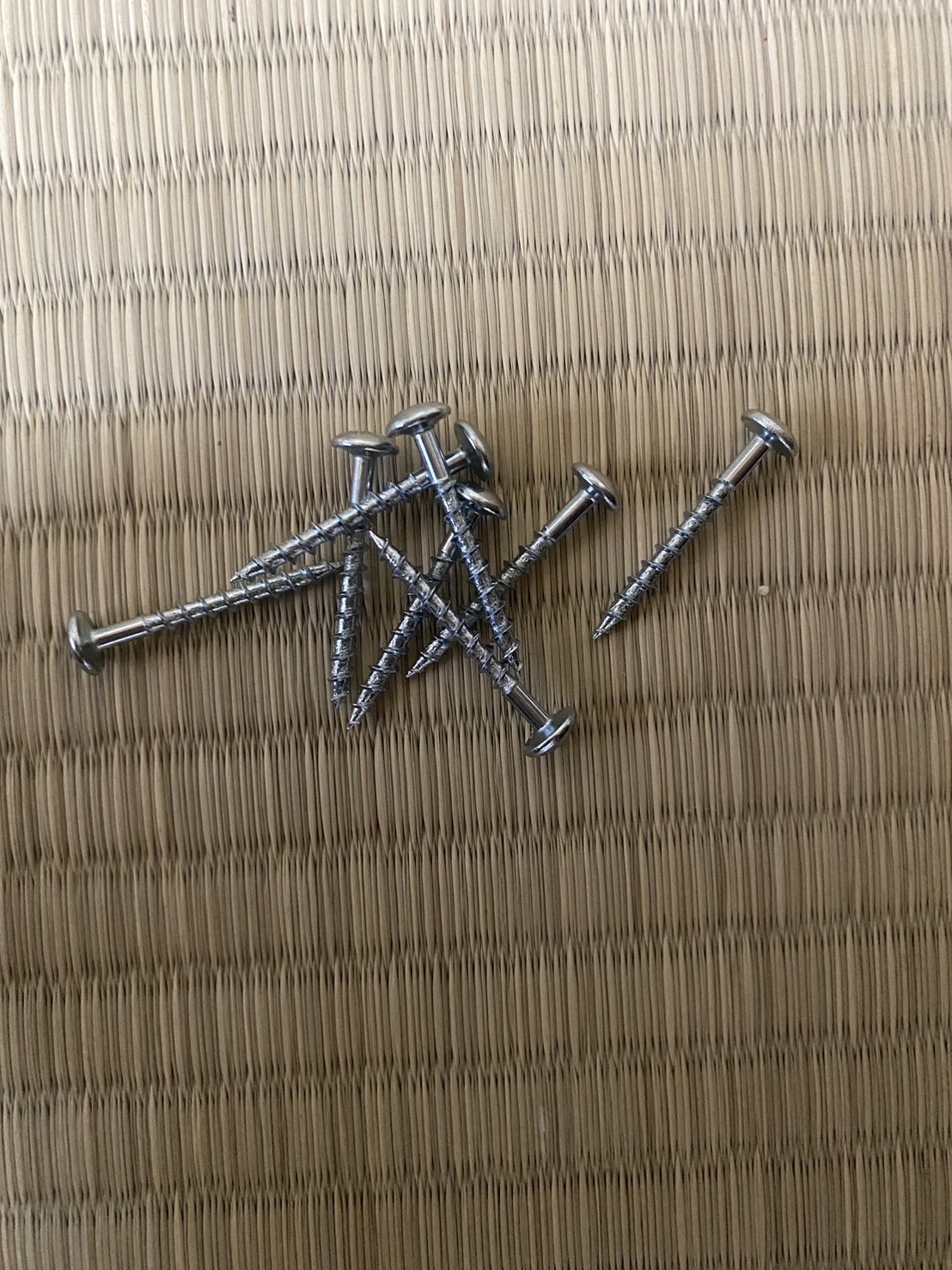 有孔ボードの裏側にある**2×4の柱(厚さ38mm)**に打ち込むため、付属ネジの長さが適切でした。